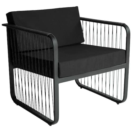 Poltrona área Externa Santiago Alumínio E Fibra Sintética Preto/preto A Poltrona Santiago para Area Externa e a escolha ideal para quem busca conforto, durabilidade e elegancia em ambientes ao ar livre. Com estrutura em aluminio e acabamento em fibra sintetica. Seu encosto e assento estofado com tecido impermeavel proporciona conforto e praticidade, tornando o uso ainda mais agradavel. Produzidas de forma artesanal, combinam sofisticacao e exclusividade no design. Ideais para areas gourmet, areas externas, churrasqueiras, ediculas e outros espacos que exigem um toque especial de charme e aconchego.