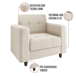 A Poltrona Arezzo é um móvel extremamente luxuoso, perfeito para compor a composição da sua décor. Mesmo com essa versatilidade e facilidade de combinar com outros elementos do cômodo, ela ainda sim, consegue ser o grande destaque do ambiente. Com um design moderno, elegante e de linhas retas, perfeita para quem busca uma proposta mais sofisticada para a sala de estar. Esta peça ainda traz uma cor extremamente impactante, deixando o móvel com um estilo ainda mais refinado. Produzida com materiais de máxima qualidade, começando pela estrutura em madeira de reflorestamento, afinal, acreditamos que podemos oferecer peças lindas sem prejudicar o meio ambiente. Possui percintas elásticas e pés chanfrados tabaco, que garantem durabilidade e alta resistência. Conta com estofamento em espuma de alta densidade D-23, revestimento em Fibra siliconada no tecido Linho, um material com um aspecto aveludado, macio e resistente. Vale a pena lembrar que antes de ser escolhido o modelo ideal, é importante sempre levar em consideração o tecido, se são anti-ácaros e anti- alérgicos. Afinal, só quem tem alergia sabe o incômodo que é, não é mesmo!? Portanto, se você é uma pessoa que tem a pele mais sensível a certos tipos de tecidos, aqui você não precisa ter medo de investir em nossa Poltrona! Nossos produtos são pensados e desenvolvidos com muito carinho, preservando seu conforto e sua saúde. Demais né!? Invista sem medo e garanta a sua!