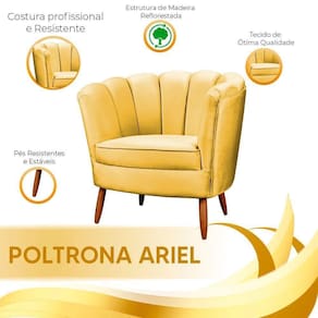 Poltrona Ariel Petala Decorativa Com Pés De Madeira Speciale Home Amarelo A poltrona Ariel foi fabricada para voce, que procura uma poltrona moderna, luxuosa e com um design unico, ela se destaca pela sofisticacao e a forma de como a costura e finalizada. O refinamento da peca torna-se sinonimo de bom gosto e elegancia se adaptando a qualquer ambiente, tornando-o charmoso e diferenciado, sendo peca de destaque na composicao de sua sala, quarto ou ate mesmo seu home office.