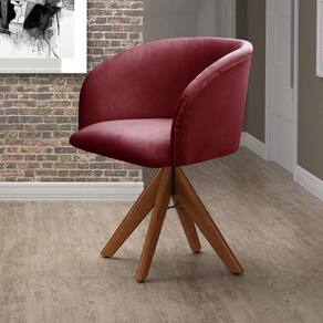 Poltrona Atenas Base Giratória de Madeira Sala Bordô - Vermelho