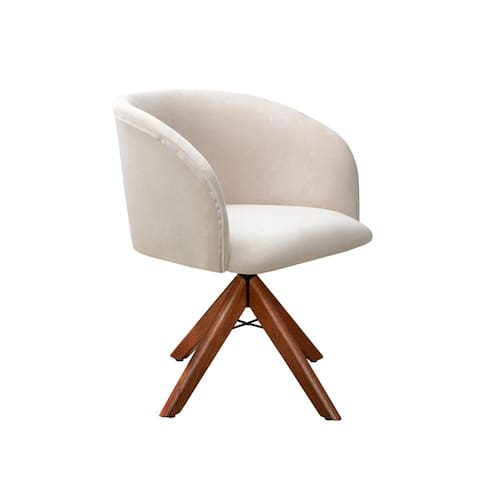 Poltrona Atenas Cadeira Giratória Pé Madeira Decoração Sala Escritório - Bege Claro