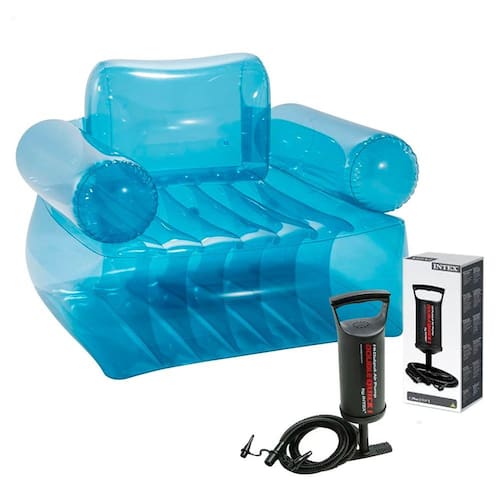1 Poltrona inflável intex azul transparente com braços 109x107x79 cm 1 Patch de reparo para corrigir pequenos poros ou furos