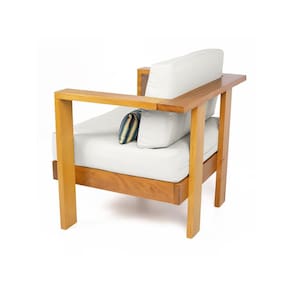 Fabricado em tecido de alta qualidade em Sarja Impermeável, seu enchimento é composto por manta fibra siliconada, estruturado por espuma ortopédica D33 para o assento e D23 para o encosto. A estrutura é produzida em madeira nobre de grápia com pintura na cor natural.
