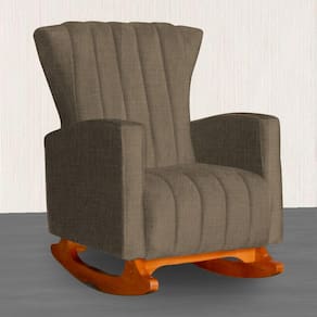 Poltrona Balanço C/ Puff Melinda Linho Marrom - LM DECOR