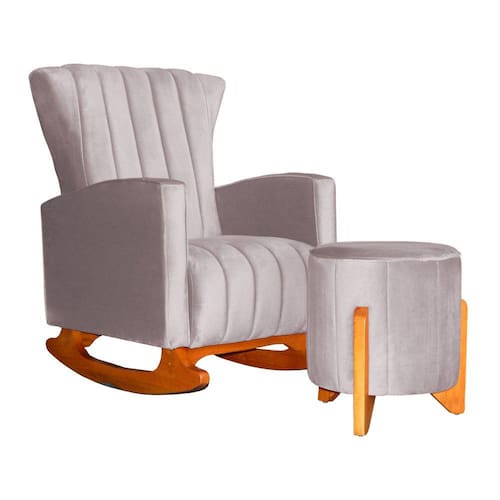 Poltrona Balanço C/ Puff Melinda Veludo Rose - LM DECOR - Rosê