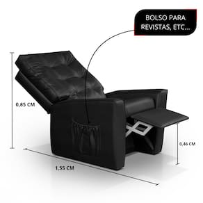 Invista em qualidade de vida e transforme seu lar em um verdadeiro refúgio de conforto. Não perca a chance de ter esse item essencial na sua casa! Adquira já a sua poltrona reclinável e descubra o que é relaxar de verdade!Medidas do produto fechado:Altura: 123cmLargura: 80cmProfundidade: 85cmMedidas do produto em reclinação máxima:Altura: 85cmLargura: 80cmProfundidade: 155cmMedidas do Assento: 51 x 46cm