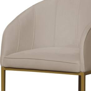 Nossa Poltrona Banqueta Decorativa Mia Suede Base Metal combina perfeitamente o conforto aconchegante com um design sofisticado. Seu revestimento em suede de alta qualidade não só é agradável ao toque, mas também adiciona uma textura suave e convidativa ao ambiente. A tonalidade sutil do suede complementa uma ampla variedade de estilos de decoração, tornando-a uma escolha versátil para qualquer espaço. A base de metal, não apenas adiciona uma moderna estabilidade, mas também proporciona um toque de luxo industrial à poltrona, esta combinação de materiais de alta qualidade e design contemporâneo não apenas acrescenta um toque elegante à sua casa, mas também oferece durabilidade e resistência. Adicione um toque de classe à sua decoração com a Poltrona Mia, uma verdadeira joia para o seu ambiente.   Dimensões do Produto Montado: Altura: 85 cm; Largura: 59 cm; Profundidade: 50 cm; Altura do chão ao assento: 41 cm; Peso: 15 kg.   Características do Produto: Densidade da espuma: D23; Revestimento: Tecido Suede; Peso suportado: 120 kg sem impacto; Cor da Base: Dourada; Base em acabamento com pintura epóxi; Material da estrutura: Madeira de eucalipto; Montagem: O produto é enviado montado; Garantia: 90 dias (defeito de fabricação).   Importante: Por se tratar de estofados fabricados manualmente, pode haver variação de medidas de 1 a 3 cm em suas dimensões.   Recomendação de limpeza: Usa pano levemente umedecido com água, seguido por pano seco. Evitar exposição ao sol, para aumentar a durabilidade da cor do tecido. Não usar escova e/ou produtos abrasivos.   Montagem: Montagem, desmontagem e outras instalações serão de responsabilidade do cliente. Não nos responsabilizamos, no ato da entrega, por subir escadas/elevadores ou pelo transporte por guincho em apartamentos. Eventuais despesas são de responsabilidade do comprador;   Recomendação de Limpeza    Limpar com pano seco ou levemente úmido. Não molhar o móvel e não expor em lugar úmido ou de calor intenso   Observações importantes   A tonalidade da cor do produto pode variar de acordo com a sua tela, a iluminação do ambiente ou sua percepção visual   Lembrando que são fotos ilustrativas tratadas em estúdios podendo haver pequena diferença nas cores   A montagem será de responsabilidade do comprador;   Não nos responsabilizamos, no ato da entrega, por subir escadas/elevadores ou transporte por guincho em apartamentos. Eventuais despesas são de responsabilidade do comprador;   Confira as dimensões deste produto e certifique-se de que passará normalmente por supostos elevadores, portas, escadas e/ou corredores de sua residência;   Para mais informações, acesse nossa Central de Atendimento.