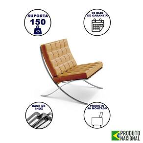 Poltrona Barcelona Base Inox Caramelo - Cor: Amarelo Poltrona Barcelona Base Inox CarameloA poltrona Barcelona, além de muito estilosa e conhecida pelo seu design impecável possui uma história muito interessante. Ela foi desenhada pelo arquiteto e diretor de Bauhaus, Ludwig Mies Van der Rohe, junto com sua sócia Lilly Reich. A poltrona foi projetada visando a harmonia do design e simbolizando um trono.Ela é imponente quando usada em ambientes de trabalho como recepções e, também, traz charme e elegância para a casa. A poltrona reflete o seu ar moderno e atual até hoje, mesmo tendo sido criada há 81 anos. Atualmente, existem apenas dois modelos feitas pelo arquiteto que estão mantidas na Espanha, no Pavilhão Alemão.CARACTERISTICASTipo: PoltronaModelo: BarcelonaCor: CarameloDIMENSÕES DO PRODUTOAltura: 78cmLargura: 78cmComprimento: 75cmOBSERVAÇÃOMontagem: Necessário apenas encaixar o assento na estrutura.Limpeza: utilizar um pano macio levemente úmidoPESO SUPORTADO150 quilosGARANTIA: 90 diasAs imagens são meramente ilustrativas e podem sofrer variações de cor e pequenos detalhes de acordo com o seu monitor, iluminação do ambiente e até mesmo a sua percepção visual.Poltrona Barcelona Base Inox Caramelo Marca: Casa Benne