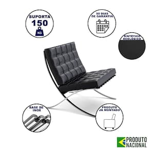 AS IMAGENS SÃO MERAMENTE ILUSTRATIVAS E PODEM SOFRER VARIAÇÕES DE COR E PEQUENOS DETALHES DE ACORDO COM O SEU MONITOR, ILUMINAÇÃO DO AMBIENTE E ATÉ MESMO A SUA PERCEPÇÃO VISUAL.Poltrona Barcelona Couro EcolÃgico Base Inox Preto