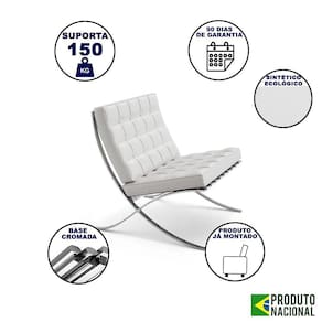 AS IMAGENS SÃO MERAMENTE ILUSTRATIVAS E PODEM SOFRER VARIAÇÕES DE COR E PEQUENOS DETALHES DE ACORDO COM O SEU MONITOR, ILUMINAÇÃO DO AMBIENTE E ATÉ MESMO A SUA PERCEPÇÃO VISUAL.Poltrona Barcelona Cromada SintÃtico Branco