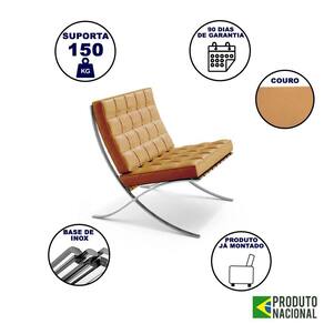 AS IMAGENS SÃO MERAMENTE ILUSTRATIVAS E PODEM SOFRER VARIAÇÕES DE COR E PEQUENOS DETALHES DE ACORDO COM O SEU MONITOR, ILUMINAÇÃO DO AMBIENTE E ATÉ MESMO A SUA PERCEPÇÃO VISUAL.Poltrona Barcelona Inox Couro LegÃtimo Caramelo