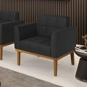 Você gosta de colecionar vários momentos memoráveis com sua família e amigos? Que tal recebê-los, com móveis de altíssima qualidade que só a D'Rossi tem? A Poltrona Elisa é adequada para você! Seu design retrô é a grande tendência do momento. Pode ser usada em diversos espaços da casa, em salas, hall de entrada, quartos, cozinhas, varanda, sacada, escritório, dentre outros. Contém as seguintes características: A estrutura é feita de madeira de Eucalipto 100% de reflorestamento, e a Base de Madeira Fixa Castanho, além de ser resistente e durável, suporta em média até 120 kg. Assento, encosto e braços, contém enchimento de espuma D-23 e é estofada em tecido Corino, que oferece muito conforto e resistência ao sentar, com aquela sensação de maciez e aconchego. Possui também, detalhes de costura no encosto e assento, resultando em um acabamento impecável, conferindo muito mais valor e elegância ao seu espaço. Para complementar a decoração com essa linda poltrona, a dica é utilizar mantas, almofadas ou vasinho de flor. E pronto, seu cantinho estará perfeito para descansar e relaxar! Aqui, você encontra várias opções, para que seus amigos e familiares se sintam acolhidos. Garanta já sua Poltrona.