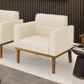 Você gosta de colecionar vários momentos memoráveis com sua família e amigos? Que tal recebê-los, com móveis de altíssima qualidade que só a D'Rossi tem? A Poltrona Elisa é adequada para você! Seu design retrô é a grande tendência do momento. Pode ser usada em diversos espaços da casa, em salas, hall de entrada, quartos, cozinhas, varanda, sacada, escritório, dentre outros. Contém as seguintes características: A estrutura é feita de madeira de Eucalipto 100% de reflorestamento, e a Base de Madeira Fixa Castanho, além de ser resistente e durável, suporta em média até 120 kg. Assento, encosto e braços, contém enchimento de espuma D-23 e é estofada em tecido Linho no tom Bege, que oferece muito conforto e resistência ao sentar, com aquela sensação de maciez e aconchego. Possui também, detalhes de costura no encosto e assento, resultando em um acabamento impecável, conferindo muito mais valor e elegância ao seu espaço. Para complementar a decoração com essa linda poltrona, a dica é utilizar mantas, almofadas ou vasinho de flor. E pronto, seu cantinho estará perfeito para descansar e relaxar! Aqui, você encontra várias opções, para que seus amigos e familiares se sintam acolhidos. Garanta já sua Poltrona.