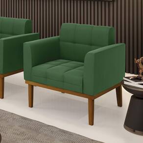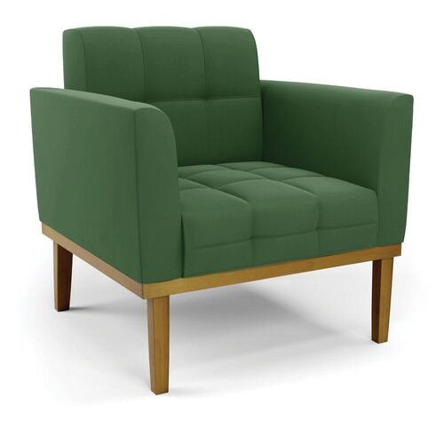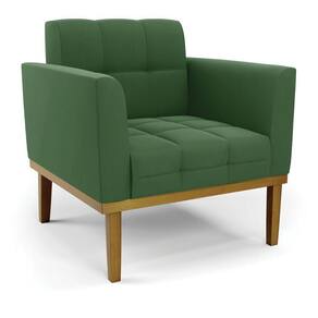 Poltrona Base de Madeira Fixa Castanho Elisa Suede Verde D03 - D`Rossi