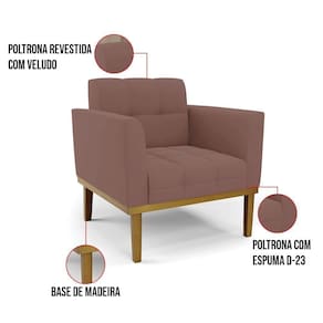 Você gosta de colecionar vários momentos memoráveis com sua família e amigos? Que tal recebê-los, com móveis de altíssima qualidade que só a D'Rossi tem? A Poltrona Elisa é adequada para você! Seu design retrô é a grande tendência do momento. Pode ser utilizada em diversos espaços da casa, em salas, hall de entrada, quartos, cozinhas, varanda, sacada, escritório, dentre outros. Contém as seguintes características: A estrutura é feita de madeira de Eucalipto 100% de reflorestamento, e a Base de Madeira Fixa Castanho, além de ser resistente e durável, suporta em média até 120 kg. Assento, encosto e braços, contém enchimento de espuma D-23 e é estofada em tecido Veludo no tom Rosê, que oferece muito conforto e resistência ao sentar, com aquela sensação de maciez e aconchego. Possui também, detalhes de costura no encosto e assento, resultando em um acabamento impecável, conferindo muito mais valor e elegância ao seu espaço. Para complementar a decoração com essa linda poltrona, a dica é utilizar mantas, almofadas ou vasinho de flor. E pronto, seu cantinho estará perfeito para descansar e relaxar! Aqui, você encontra várias opções, para que seus amigos e familiares se sintam acolhidos. Garanta já sua Poltrona.