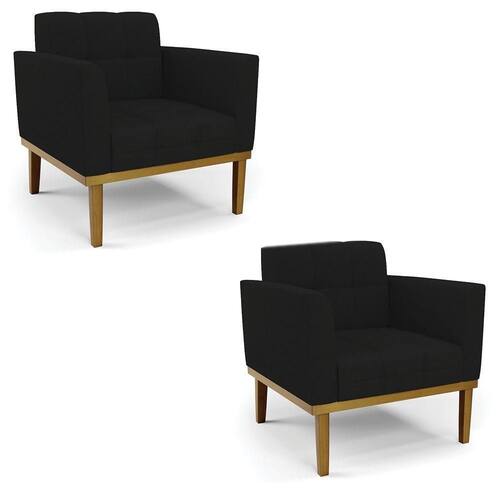 Você gosta de colecionar vários momentos memoráveis com sua família e amigos? Que tal recebê-los, com móveis de altíssima qualidade que só a D'Rossi tem? A Poltrona Elisa é adequada para você! Seu design retrô é a grande tendência do momento. Pode ser utilizada em diversos espaços da casa, em salas, hall de entrada, quartos, cozinhas, varanda, sacada, escritório, dentre outros. Contém as seguintes características: A estrutura é feita de madeira de Eucalipto 100% de reflorestamento, e a Base de Madeira Fixa Castanho, além de ser resistente e durável, suporta em média até 120 kg. Assento, encosto e braços, contém enchimento de espuma D-23 e é estofada em tecido Linho no tom Preto, que oferece muito conforto e resistência ao sentar, com aquela sensação de maciez e aconchego. Possui também, detalhes de costura no encosto e assento, resultando em um acabamento impecável, conferindo muito mais valor e elegância ao seu espaço. Para complementar a decoração com essa linda poltrona, a dica é utilizar mantas, almofadas ou vasinho de flor. E pronto, seu cantinho estará perfeito para descansar e relaxar! Aqui, você encontra várias opções, para que seus amigos e familiares se sintam acolhidos. Garanta já seu Kit 2 Poltronas..