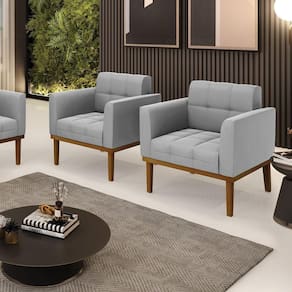Você gosta de colecionar vários momentos memoráveis com sua família e amigos? Que tal recebê-los, com móveis de altíssima qualidade que só a DRossi tem? A Poltrona Elisa é adequada para você! Seu design retrô é a grande tendência do momento. Pode ser usada em diversos espaços da casa, em salas, hall de entrada, quartos, cozinhas, varanda, sacada, escritório, dentre outros. Contém as seguintes características: A estrutura é feita de madeira de Eucalipto 100% de reflorestamento, e a Base de Madeira Fixa Castanho, além de ser resistente e durável, suporta em média até 120 kg. Assento, encosto e braços, contém enchimento de espuma D-23 e é estofada em tecido Suede, que oferece muito conforto e resistência ao sentar, com aquela sensação de maciez e aconchego. Possui também, detalhes de costura no encosto e assento, resultando em um acabamento impecável, conferindo muito mais valor e elegância ao seu espaço. Para complementar a decoração com essa linda poltrona, a dica é utilizar mantas, almofadas ou vasinho de flor. E pronto, seu cantinho estará perfeito para descansar e relaxar! Aqui, você encontra várias opções, para que seus amigos e familiares se sintam acolhidos. Garanta já seu Kit 2 Poltronas. Dimensões da Poltrona: Altura total: 81 cm Largura total: 64 cm Profundidade total: 64 cm Altura do encosto: 36 cm Largura do assento: 47 cm Profundidade do assento: 48 cm Altura do chão ao assento: 45 cm Espessura do assento: 18 cm Tamanho dos pés: 30 cm Espessura do braço: 9 cm Peso: 18 kg Especificações do Produto Estrutura: Madeira Eucalipto Espuma: D-23 Tecido: Suede Tipo de pés: Base Madeira Fixa Castanho Peso suportado: Até 120 Kg Garantia: 90 dias contra defeito de fabricação Montagem: O produto vai montado, apenas parafusar a base Instruções de limpeza: Utilizar um pano limpo e levemente úmido Você irá receber: 02 Poltronas - Entregue em: 02 Volumes Observações Relevantes - Todos os produtos vão embalados com total segurança; - As cores dos produtos podem sofrer alterações dependendo do seu monitor; - Para futuras compras, não garantimos a mesma tonalidade de cor, pois existe variação a cada lote do fabricante do tecido; - As imagens são meramente ilustrativas, não acompanham objetos de decoração e eletros; - Confira as dimensões do produto no momento da compra e certifique-se de que passará normalmente por escadas, elevadores, portas e corredores; - Importante: Por se tratar de estofado as medidas podem ter uma pequena variação em até 3 cm; - Não nos responsabilizamos no ato da entrega por montagens, desmontagens, instalações de produtos; - Não nos responsabilizamos no ato da entrega por subir escadas, elevadores, nem utilização de guinchos ou equipamentos similares para acesso a pisos superiores em apartamentos; - A entrega do produto é realizada em todo território nacional, até onde as rodovias alcançam, entregas fluviais ou aéreas devem ser cotadas a parte; - Observando as orientações acima, evita-se futuros desagrados ou imprevistos com a entrega do produto. Havendo despesas adicionais, serão de responsabilidade do cliente;