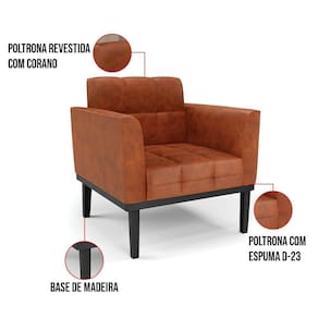 Você gosta de colecionar vários momentos memoráveis com sua família e amigos? Que tal recebê-los, com móveis de altíssima qualidade que só a D'Rossi tem? A Poltrona Elisa é adequada para você! Seu design retrô é a grande tendência do momento. Pode ser usada em diversos espaços da casa, em salas, hall de entrada, quartos, cozinhas, varanda, sacada, escritório, dentre outros. Contém as seguintes características: A estrutura é feita de madeira de Eucalipto 100% de reflorestamento, e a Base de Madeira Fixa Preto, além de ser resistente e durável, suporta em média até 120 kg. Assento, encosto e braços, contém enchimento de espuma D-23 e é estofada em tecido Corano, que oferece muito conforto e resistência ao sentar, com aquela sensação de maciez e aconchego. Possui também, detalhes de costura no encosto e assento, resultando em um acabamento impecável, conferindo muito mais valor e elegância ao seu espaço. Para complementar a decoração com essa linda poltrona, a dica é utilizar mantas, almofadas ou vasinho de flor. E pronto, seu cantinho estará perfeito para descansar e relaxar! Aqui, você encontra várias opções, para que seus amigos e familiares se sintam acolhidos. Garanta já sua Poltrona.