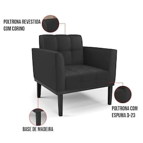 Você gosta de colecionar vários momentos memoráveis com sua família e amigos? Que tal recebê-los, com móveis de altíssima qualidade que só a D'Rossi tem? A Poltrona Elisa é adequada para você! Seu design retrô é a grande tendência do momento. Pode ser usada em diversos espaços da casa, em salas, hall de entrada, quartos, cozinhas, varanda, sacada, escritório, dentre outros. Contém as seguintes características: A estrutura é feita de madeira de Eucalipto 100% de reflorestamento, e a Base de Madeira Fixa Preto, além de ser resistente e durável, suporta em média até 120 kg. Assento, encosto e braços, contém enchimento de espuma D-23 e é estofada em tecido Corino, no tom Preto, que oferece muito conforto e resistência ao sentar, com aquela sensação de maciez e aconchego. Possui também, detalhes de costura no encosto e assento, resultando em um acabamento impecável, conferindo muito mais valor e elegância ao seu espaço. Para complementar a decoração com essa linda poltrona, a dica é utilizar mantas, almofadas ou vasinho de flor. E pronto, seu cantinho estará perfeito para descansar e relaxar! Aqui, você encontra várias opções, para que seus amigos e familiares se sintam acolhidos. Garanta já sua Poltrona.