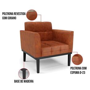 Você gosta de colecionar vários momentos memoráveis com sua família e amigos? Que tal recebê-los, com móveis de altíssima qualidade que só a D'Rossi tem? A Poltrona Elisa é adequada para você! Seu design retrô é a grande tendência do momento. Pode ser usada em diversos espaços da casa, em salas, hall de entrada, quartos, cozinhas, varanda, sacada, escritório, dentre outros. Contém as seguintes características: A estrutura é feita de madeira de Eucalipto 100% de reflorestamento, e a Base de Madeira Fixa Preto, além de ser resistente e durável, suporta em média até 120 kg. Assento, encosto e braços, contém enchimento de espuma D-23 e é estofada em tecido Corano, que oferece muito conforto e resistência ao sentar, com aquela sensação de maciez e aconchego. Possui também, detalhes de costura no encosto e assento, resultando em um acabamento impecável, conferindo muito mais valor e elegância ao seu espaço. Para complementar a decoração com essa linda poltrona, a dica é utilizar mantas, almofadas ou vasinho de flor. E pronto, seu cantinho estará perfeito para descansar e relaxar! Aqui, você encontra várias opções, para que seus amigos e familiares se sintam acolhidos. Garanta já seu Kit 2 Poltronas..