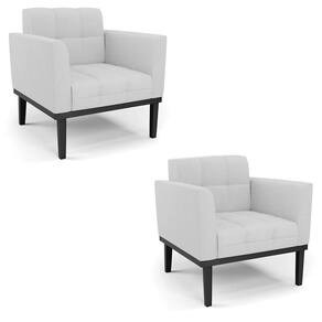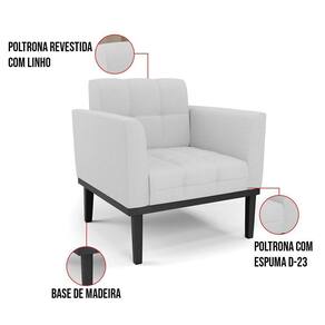 Poltrona Base De Madeira Fixa Preto Kit 2 Elisa Linho D03 - D'rossi Cor A05 Cinza