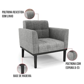 Você gosta de colecionar vários momentos memoráveis com sua família e amigos? Que tal recebê-los, com móveis de altíssima qualidade que só a D'Rossi tem? A Poltrona Elisa é adequada para você! Seu design retrô é a grande tendência do momento. Pode ser usada em diversos espaços da casa, em salas, hall de entrada, quartos, cozinhas, varanda, sacada, escritório, dentre outros. Contém as seguintes características: A estrutura é feita de madeira de Eucalipto 100% de reflorestamento, e a Base de Madeira Fixa Preto, além de ser resistente e durável, suporta em média até 120 kg. Assento, encosto e braços, contém enchimento de espuma D-23 e é estofada em tecido Linho, que oferece muito conforto e resistência ao sentar, com aquela sensação de maciez e aconchego. Possui também, detalhes de costura no encosto e assento, resultando em um acabamento impecável, conferindo muito mais valor e elegância ao seu espaço. Para complementar a decoração com essa linda poltrona, a dica é utilizar mantas, almofadas ou vasinho de flor. E pronto, seu cantinho estará perfeito para descansar e relaxar! Aqui, você encontra várias opções, para que seus amigos e familiares se sintam acolhidos. Garanta já seu Kit 2 Poltronas..