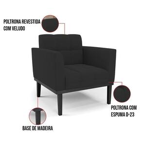 Você gosta de colecionar vários momentos memoráveis com sua família e amigos? Que tal recebê-los, com móveis de altíssima qualidade que só a D'Rossi tem? A Poltrona Elisa é adequada para você! Seu design retrô é a grande tendência do momento. Pode ser usada em diversos espaços da casa, em salas, hall de entrada, quartos, cozinhas, varanda, sacada, escritório, dentre outros. Contém as seguintes características: A estrutura é feita de madeira de Eucalipto 100% de reflorestamento, e a Base de Madeira Fixa Preto, além de ser resistente e durável, suporta em média até 120 kg. Assento, encosto e braços, contém enchimento de espuma D-23 e é estofada em tecido Veludo, no tom Preto, que oferece muito conforto e resistência ao sentar, com aquela sensação de maciez e aconchego. Possui também, detalhes de costura no encosto e assento, resultando em um acabamento impecável, conferindo muito mais valor e elegância ao seu espaço. Para complementar a decoração com essa linda poltrona, a dica é utilizar mantas, almofadas ou vasinho de flor. E pronto, seu cantinho estará perfeito para descansar e relaxar! Aqui, você encontra várias opções, para que seus amigos e familiares se sintam acolhidos. Garanta já seu Kit 2 Poltronas..