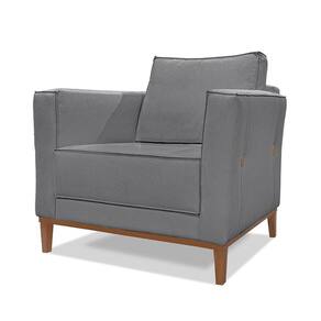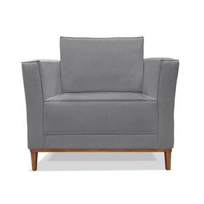 Poltrona Base De Madeira Sala De Estar Grace Linho Cinza S04 - D'rossi