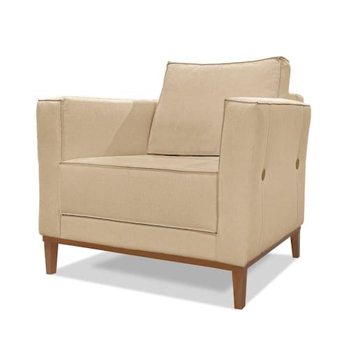 A Poltrona Grace é uma poltrona que combina elegância, conforto e durabilidade. Ela tem um design moderno e sofisticado, com pés em madeira maciça e revestimento em tecido Linho Rústico Areia, que harmonizam com qualquer ambiente. Ela é ideal para sala de estar, recepções ou qualquer outro espaço que você queira decorar com estilo e bom gosto. Ela tem uma estrutura em madeira maciça, que garante a resistência e a sustentabilidade do produto. Ela suporta até 100 Kg de peso, podendo ser utilizada por pessoas de diferentes biotipos. Ela tem um acabamento reforçado com espuma de qualidade no assento Fixo com percintas elásticas italiana, molas bonnel e espuma HR 28 e plumante em silicone, que oferece maciez e aconchego. Acompanha 1 almofada decorativa ( Enchimento fibra de silicone), costura italiana. Nas braças do lado externo contém botões em madeira cerejeira com altura de 15cm, cor mel. Tem pés em madeira maciça, que protegem o produto contra corrosão e desgaste. A Poltrona Grace é um produto de alta qualidade, beleza e funcionalidade. Ela é fácil de transportar, pois tem um peso leve e um tamanho compacto. A Poltrona Grace é um produto que vai fazer a diferença na sua decoração e no seu bem-estar. Ela vai trazer charme, conforto e durabilidade para o seu ambiente. Aproveite essa oferta e leve para casa uma poltrona de qualidade por um preço incrível. Essa é a sua chance de ter uma poltrona maravilhosa por um preço imperdível. Corra e garanta a sua antes que acabe o estoque!