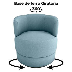 Poltrona Marselha, o conforto que gira com você! Design arredondado composta por estrutura em madeira de eucalipto de reflorestamento (com percintas elásticas) e base giratória 360 (em ferro). Estofada com espumas D20 (encosto), D13 (braças) e D23 (assento), garantindo maciez e sustentação. Revestida em tecido Bouclé (macio e encorpado), com capacidade para até 110kg por assento. Este produto será entregue em 01 volume.