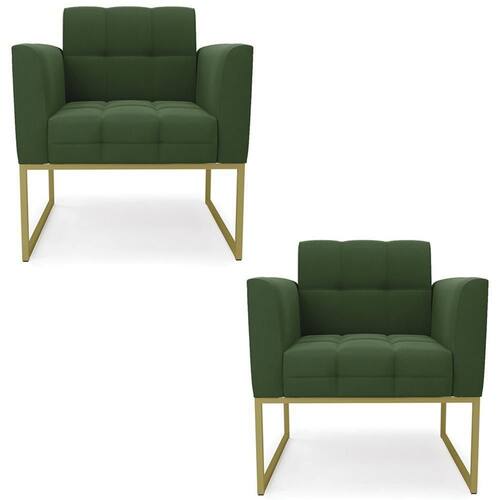 Você está procurando um Kit Poltrona que combine com a sua Sala De Estar, recepção ou seu quarto, que ofereça conforto e qualidade? Então você vai adorar a Poltrona Base Industrial Dourado Kit 2 Ana Suede Verde, da Ibiza!