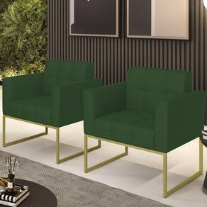 Você está procurando um Kit Poltrona que combine com a sua Sala De Estar, recepção ou seu quarto, que ofereça conforto e qualidade? Então você vai adorar a Poltrona Base Industrial Dourado Kit 2 Ana Veludo Luxo Verde, da Ibiza!