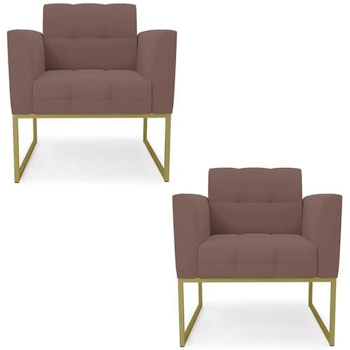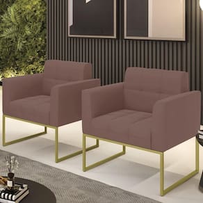 Você está procurando um Kit Poltrona que combine com a sua Sala De Estar, recepção ou seu quarto, que ofereça conforto e qualidade? Então você vai adorar a Poltrona Base Industrial Dourado Kit 2 Ana Veludo Rosê, da Ibiza!