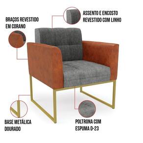 Você gosta de colecionar vários momentos memoráveis com sua família e amigos? Que tal recebê-los, com móveis de altíssima qualidade que só a D'Rossi tem? A Poltrona Elisa é adequada para você! Seu design retrô é a grande tendência do momento. Pode ser usada em diversos espaços da casa, em salas, hall de entrada, quartos, cozinhas, varanda, sacada, escritório, dentre outros. Contém as seguintes características: A estrutura é feita de madeira de Eucalipto 100% de reflorestamento, e a Base Industrial Dourado, além de ser resistente e durável, suporta em média até 120 kg. Assento, encosto e braços, contém enchimento de espuma D-23 e é estofada em tecido Corano Nozes com Linho, no tom Grafite, que oferece muito conforto e resistência ao sentar, com aquela sensação de maciez e aconchego. Possui também, detalhes de costura no encosto e assento, resultando em um acabamento impecável, conferindo muito mais valor e elegância ao seu espaço. Para complementar a decoração com essa linda poltrona, a dica é utilizar mantas, almofadas ou vasinho de flor. E pronto, seu cantinho estará perfeito para descansar e relaxar! Aqui, você encontra várias opções, para que seus amigos e familiares se sintam acolhidos. Garanta já sua Poltrona.