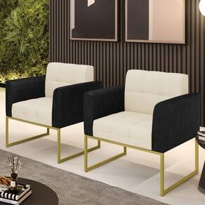Você gosta de colecionar vários momentos memoráveis com sua família e amigos? Que tal recebê-los, com móveis de altíssima qualidade que só a D'Rossi tem? A Poltrona Elisa é adequada para você! Seu design retrô é a grande tendência do momento. Pode ser usada em diversos espaços da casa, em salas, hall de entrada, quartos, cozinhas, varanda, sacada, escritório, dentre outros. Contém as seguintes características: A estrutura é feita de madeira de Eucalipto 100% de reflorestamento, e a Base Industrial Dourado, além de ser resistente e durável, suporta em média até 120 kg. Assento, encosto e braços, contém enchimento de espuma D-23 e é estofada em tecido Corano Preto com Linho, no tom Bege, que oferece muito conforto e resistência ao sentar, com aquela sensação de maciez e aconchego. Possui também, detalhes de costura no encosto e assento, resultando em um acabamento impecável, conferindo muito mais valor e elegância ao seu espaço. Para complementar a decoração com essa linda poltrona, a dica é utilizar mantas, almofadas ou vasinho de flor. E pronto, seu cantinho estará perfeito para descansar e relaxar! Aqui, você encontra várias opções, para que seus amigos e familiares se sintam acolhidos. Garanta já sua Poltrona.