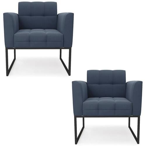Você está procurando um Kit Poltrona que combine com a sua Sala De Estar, recepção ou seu quarto, que ofereça conforto e qualidade? Então você vai adorar a Poltrona Base Industrial Preto Kit 2 Ana Suede Azul Marinho, da Ibiza!