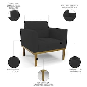 A Poltrona Decorativa é revestida em Veludo, que é durável e fácil de limpar, e ainda valoriza o design da poltrona. Os braços e encosto são confortáveis em espuma D-18, já o assento é com espuma D-26 de alta densidade, que garante um assento firme e aconchegante, ideal para relaxar após um dia cansativo. A base em madeira de eucalipto é um charme à parte, que confere um toque Rústico e sofisticado à peça. São 2 poltronas com estrutura resistente que suporta até 120 kg cada. A montagem é muito simples, pois a poltrona já vem pronta, bastando apenas fixar a base com os parafusos que acompanham o produto. A limpeza também é muito prática, pois basta utilizar um pano limpo e levemente úmido, sem produtos abrasivos, para manter a sua poltrona sempre em bom estado. Sem dúvidas a Poltrona Para Sala vai transformar seu ambiente, deixando mais confortável e estiloso!