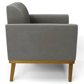 A Poltrona Decorativa é revestida em Suede, que é durável e fácil de limpar, e ainda valoriza o design da poltrona. Os braços e encosto são confortáveis em espuma D-18, já o assento é com espuma D-26 de alta densidade, que garante um assento firme e aconchegante, ideal para relaxar após um dia cansativo. A base em madeira de eucalipto é um charme à parte, que confere um toque Rústico e sofisticado à peça. São 2 poltronas com estrutura resistente que suporta até 120 kg cada. A montagem é muito simples, pois a poltrona já vem pronta, bastando apenas fixar a base com os parafusos que acompanham o produto. A limpeza também é muito prática, pois basta utilizar um pano limpo e levemente úmido, sem produtos abrasivos, para manter a sua poltrona sempre em bom estado. Sem dúvidas a Poltrona Para Sala vai transformar seu ambiente, deixando mais confortável e estiloso!