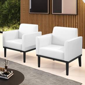 Você está procurando um Kit Poltrona que combine com a sua Sala De Estar, recepção ou seu quarto, que ofereça conforto e qualidade? Então você vai adorar a Poltrona Base Madeira Preto Kit 2 Maressa Sintético PU Branco, da Ibiza!