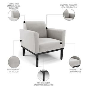 A Poltrona Decorativa é revestida em Veludo, que é durável e fácil de limpar, e ainda valoriza o design da poltrona. Os braços e encosto são confortáveis em espuma D-18, já o assento é com espuma D-26 de alta densidade, que garante um assento firme e aconchegante, ideal para relaxar após um dia cansativo. A base em madeira de eucalipto é um charme à parte, que confere um toque Rústico e sofisticado à peça. São 2 poltronas com estrutura resistente que suporta até 120 kg cada. A montagem é muito simples, pois a poltrona já vem pronta, bastando apenas fixar a base com os parafusos que acompanham o produto. A limpeza também é muito prática, pois basta utilizar um pano limpo e levemente úmido, sem produtos abrasivos, para manter a sua poltrona sempre em bom estado. Sem dúvidas a Poltrona Para Sala vai transformar seu ambiente, deixando mais confortável e estiloso!