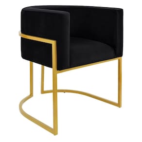 Poltrona Base Metal Dourada Veludo Preto 150kg