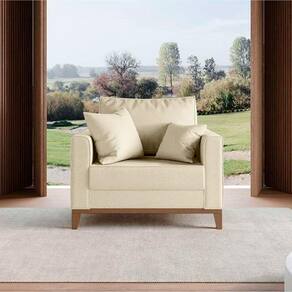 Poltrona Beny Com Pés e Base de Madeira