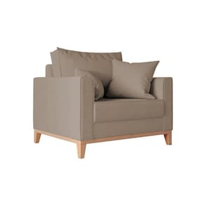 IMAGENS MERAMENTE ILUSTRATIVAS REALIZADO EDIÇÃO, PODENDO HAVER UMA PEQUENA VARIAÇÃO DE COR DEPENDENDO DE CADA TELA OU MONITOR.Poltrona Beny para RecepÃÃo com 2 Almofadas Veludo Bege Base em Madeira MaciÃa