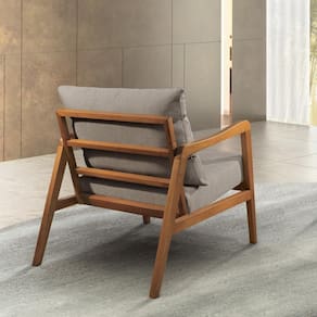A poltrona Bia tem um design moderno e cheio de charme. Também proporciona muita estabilidade com seus detalhes em ripado nas costas. Contém almofadas em formato pastel para fugir um pouco do tradicional sem deixar de ser clássica.