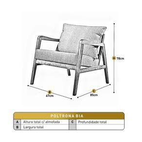 A poltrona Bia tem um design moderno e cheio de charme. Também proporciona muita estabilidade com seus detalhes em ripado nas costas. Contém almofadas em formato pastel para fugir um pouco do tradicional sem deixar de ser clássica.