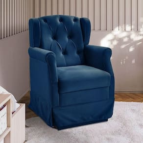 Poltrona Cade. De Amam. Balanço Ternura Veludo Azul A poltrona amamentacao, proporciona todo o conforto e aconchego que a familia precisa nesta fase tao especial, e encanta pelo seu estilo sofisticado. Feita com materia-prima de alta qualidade a poltrona possui estofado revestido por tecido de toque suave que proporciona aconchego para os momentos de amamentacao. A poltrona possui um balanco suave em sua base, e um encosto alto com espuma de excelente densidade e estrutura solida de madeira. Caracteristicas: Estrutura: fabricado com Madeira Eucalipto Reflorestada, e alguns detalhes em MDF Assento: Espuma D20 Encosto: Espuma D12 Braco: Espuma D14 Base/Pes: Madeira Eucalipto Reflorestada Peso Suportado: 150 Kg Necessita de Montagem: Nao