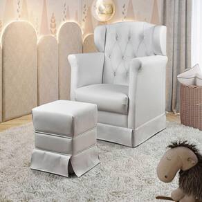 Poltrona Cadeira De Amamentação Balanço E Puff Eliza Corano Star Confort Branco A poltrona amamentacao Eliza proporciona todo o conforto e aconchego que a familia precisa nesta fase tao especial, e encanta pelo seu estilo sofisticado. Feita com materia-prima de alta qualidade a poltrona possui estofado revestido por tecido de toque suave que proporciona aconchego para os momentos de amamentacao. O puff quadrado traz conforto e beleza para a rotina da mamae, e ajuda no descanso para pernas e pes tornando o momento ainda mais confortavel. A poltrona possui um balanco suave em sua base, e um encosto alto com espuma de excelente densidade e estrutura solida de madeira. A GARANTIA E DE FABRICA Comprando conosco, alem das vantagens em adquirir um produto de qualidade e sofisticacao, se eventualmente o mesmo apresentar algum problema, dentro do prazo de noventa dias, por sermos os fabricantes, te daremos total assistencia. Queremos lhe proporcionar uma experiencia agradavel com a compra e a certeza de estar negociando com uma empresa que preza acima de tudo, pela relacao de confianca com o cliente, nossa maior satisfacao.