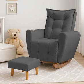 Poltrona Cadeira de Amamentação Balanço e Puff Ternura Grafite - Cinza
