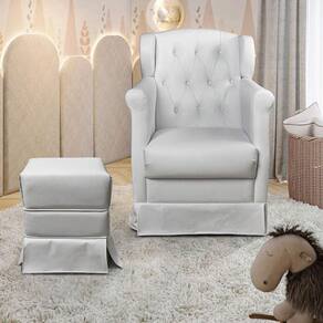 A poltrona amamentação Eliza proporciona todo o conforto e aconchego que a família precisa nesta fase tão especial, e encanta pelo seu estilo sofisticado. Feita com matéria-prima de alta qualidade a poltrona possui estofado revestido por tecido de toque suave que proporciona aconchego para os momentos de amamentação. O puff quadrado traz conforto e beleza para a rotina da mamãe, e ajuda no descanso para pernas e pés tornando o momento ainda mais confortável. A poltrona possui um balanço suave em sua base, e um encosto alto com espuma de excelente densidade e estrutura sólida de madeira.