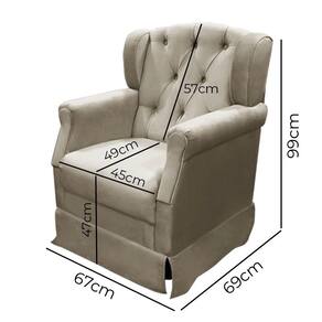 Dimensões da Poltrona: Altura: 99 cm; Largura: 67 cm; Profundidade: 69 cm; Peso: 23,200 Kg; Profundidade do Assento: 49 cm; Largura do Assento: 45 cm; Altura do Encosto: 57 cm; Altura do Assento: 47 cm.
